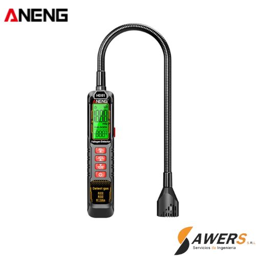 El ANENG HD01 es un detector de gases refrigerantes (halógenos) diseñado para localizar fugas microscópicas en sistemas de aire acondicionado automotriz y refrigeración industrial. A diferencia de los detectores de gas combustible (como el GN801), este modelo se especializa en gases freón como el R22, R32 y R134a