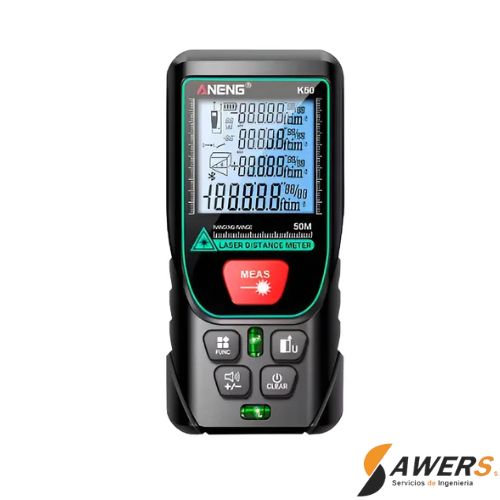 Aneng K50 es un medidor de distancia láser (distanciómetro) compacto y de alta precisión diseñado para tareas de construcción, arquitectura y proyectos domésticos. Se destaca por su portabilidad y su capacidad para realizar cálculos automáticos de área y volumen
