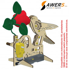 Capacidad de desarrollo más complejo: El kit es compatible con un motorreductor de 5V, porta batería o interruptor (no incluye esos componentes), es posible actualizarlo para hacer que su movimiento sea automático impulsado por el motor y la batería eléctrica. O para utilizar el motor y la manivela como generador de energía para alimentar un LED que añada iluminación al colibrí o la flor.