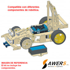 -El kit NO incluye los motores y ruedas traseras. Estos motores y ruedas son los que se usan tradicionalmente en robótica y son muy fáciles de conseguir o de tenerlos ya previamente.