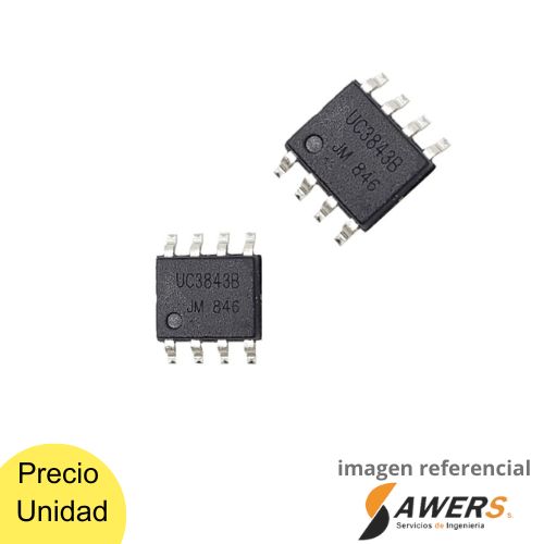 El UC3843 es un controlador de modulación por ancho de pulsos (PWM) en modo corriente, diseñado principalmente para fuentes de alimentación conmutadas (SMPS) y convertidores de CC a CC. Es conocido por requerir un mínimo de componentes externos, lo que simplifica los diseños de circuitos.